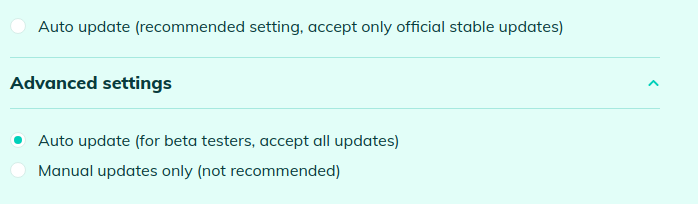 If you would like to participate in beta testing the new releases, then you can choose the following option: