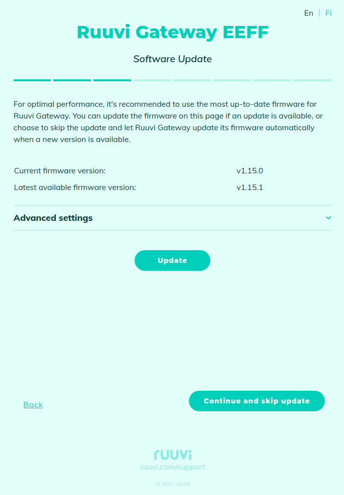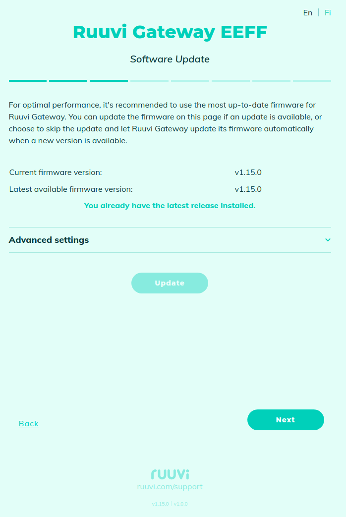 In this step, Ruuvi Gateway checks for software updates.